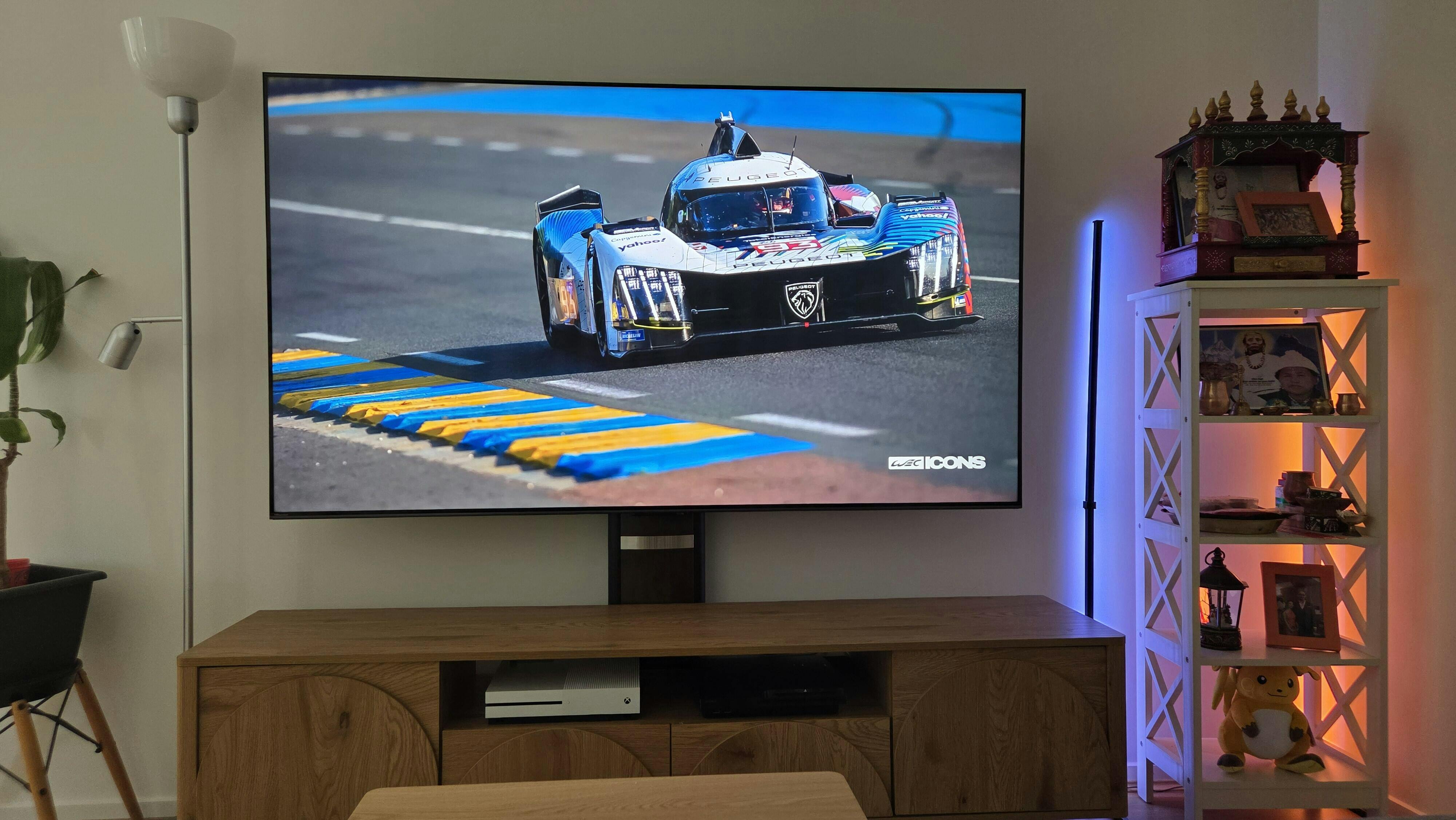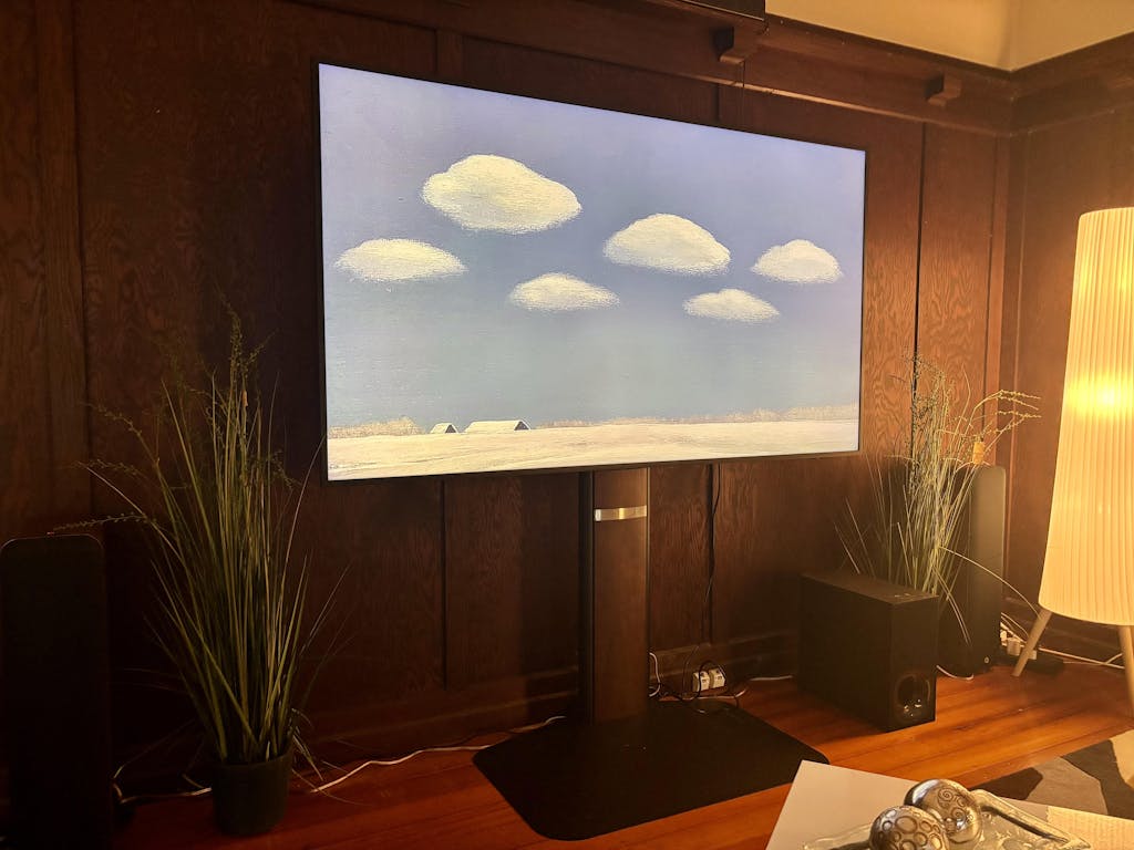 This versatile stand positions your TV very close to the wall while offering both height and angle adjustments for perfect viewing.